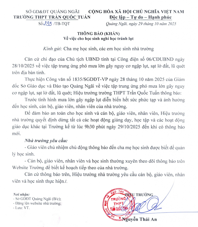 Thông báo nghỉ học